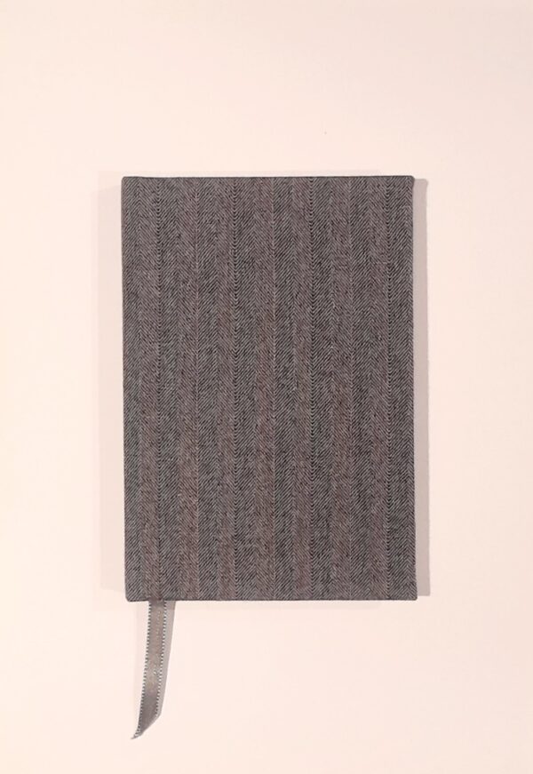 A5 blank notebook covered with grey and blue stripe wool suiting fabric – Zero Waste