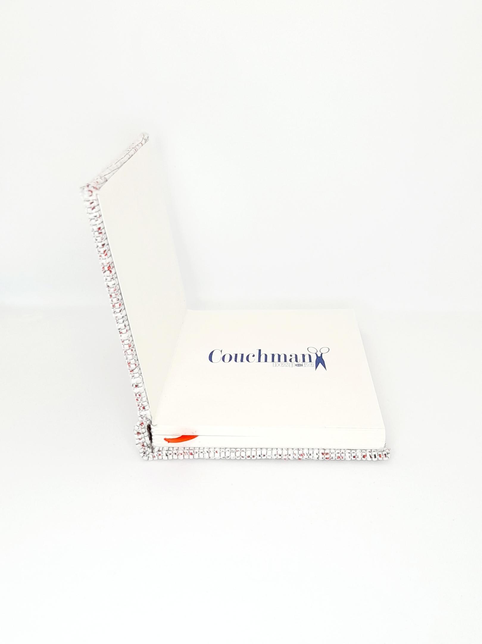 Make this the start of the next step in your life. A notebook for your daily journaling, to sketch out that new design or to write your memoirs. Using a stylish notebook covered in cloth from a sample book remnant.