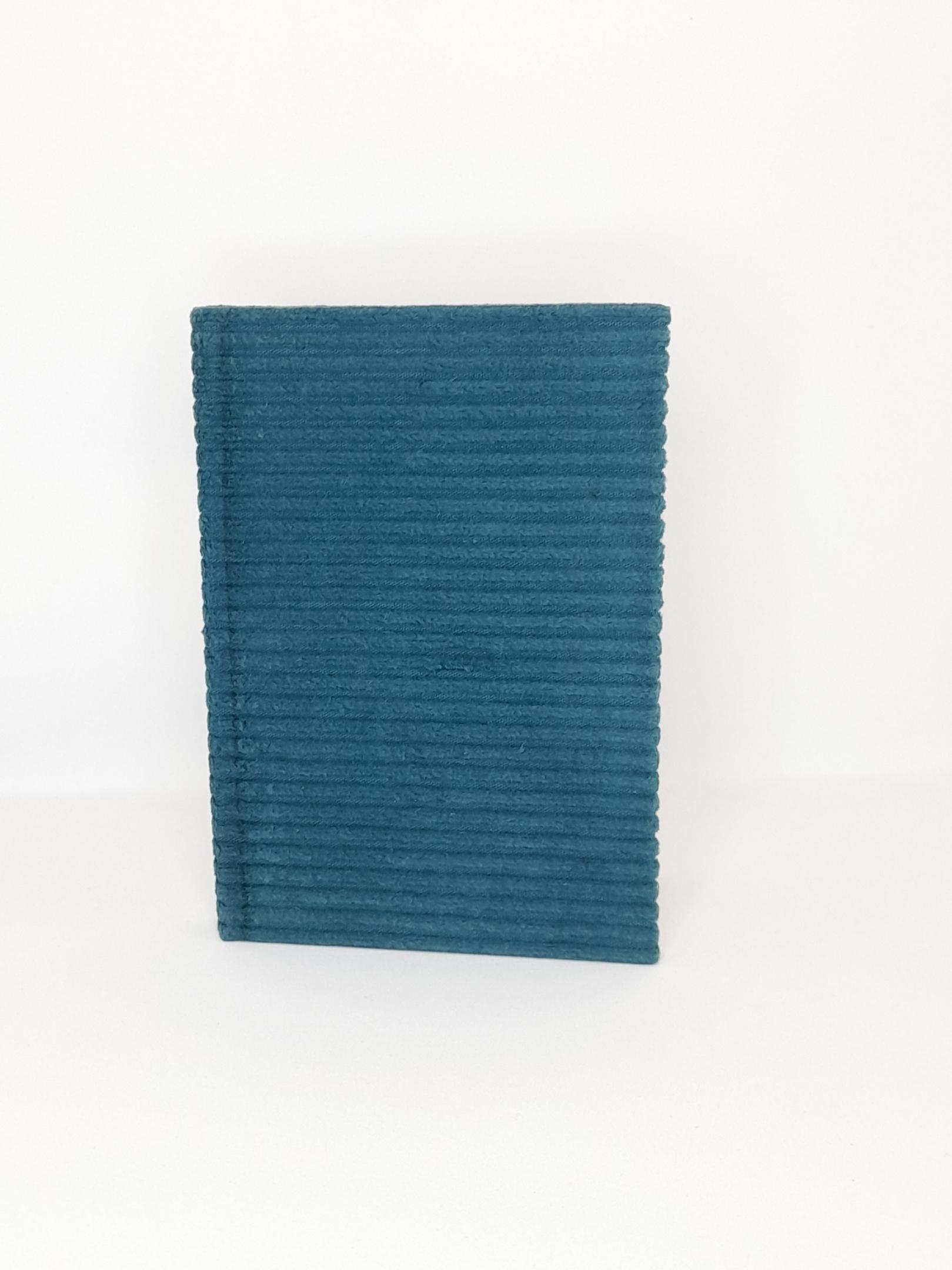 A5 blank notebook covered with turquoise wide corduroy organic cotton fabric – Zero Waste