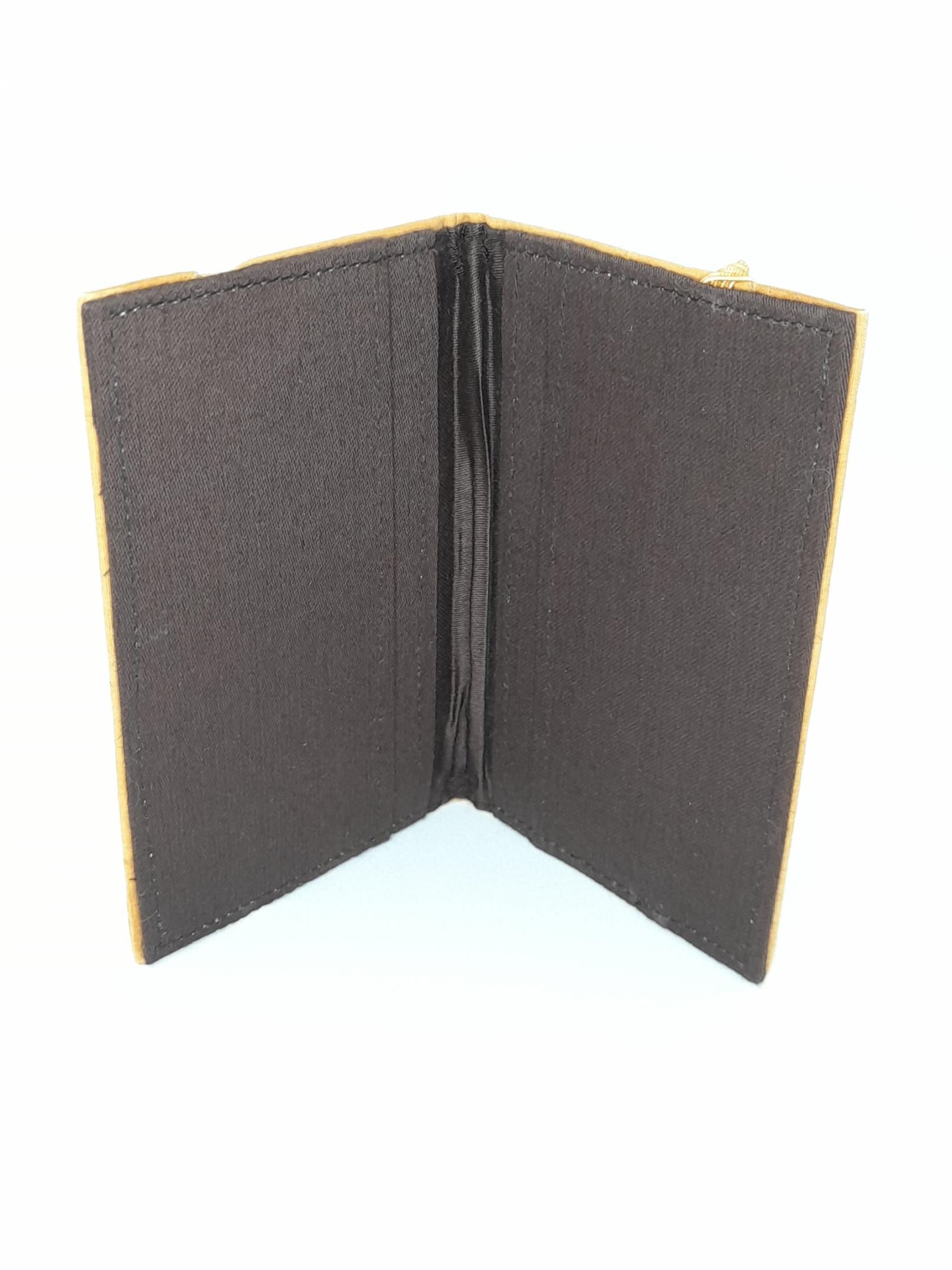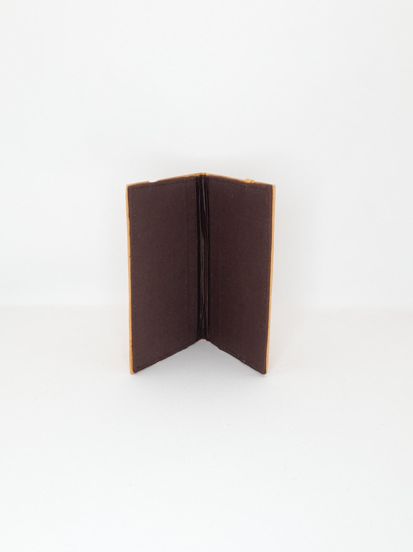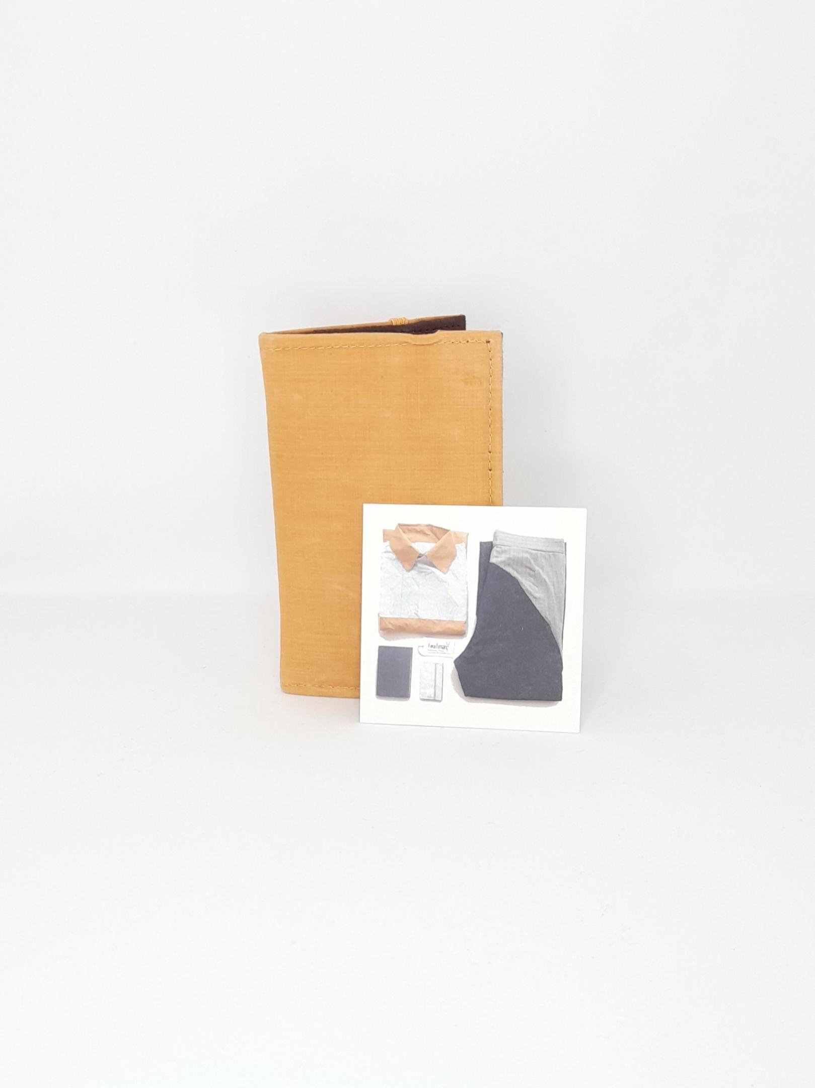 This wallet is made from hand dyed organic bamboo. The cloth is a remnant cut from a shirt made in the same cloth. The dye is from turmeric. Made by artisans in India through Kapdaa The Offcut Company.